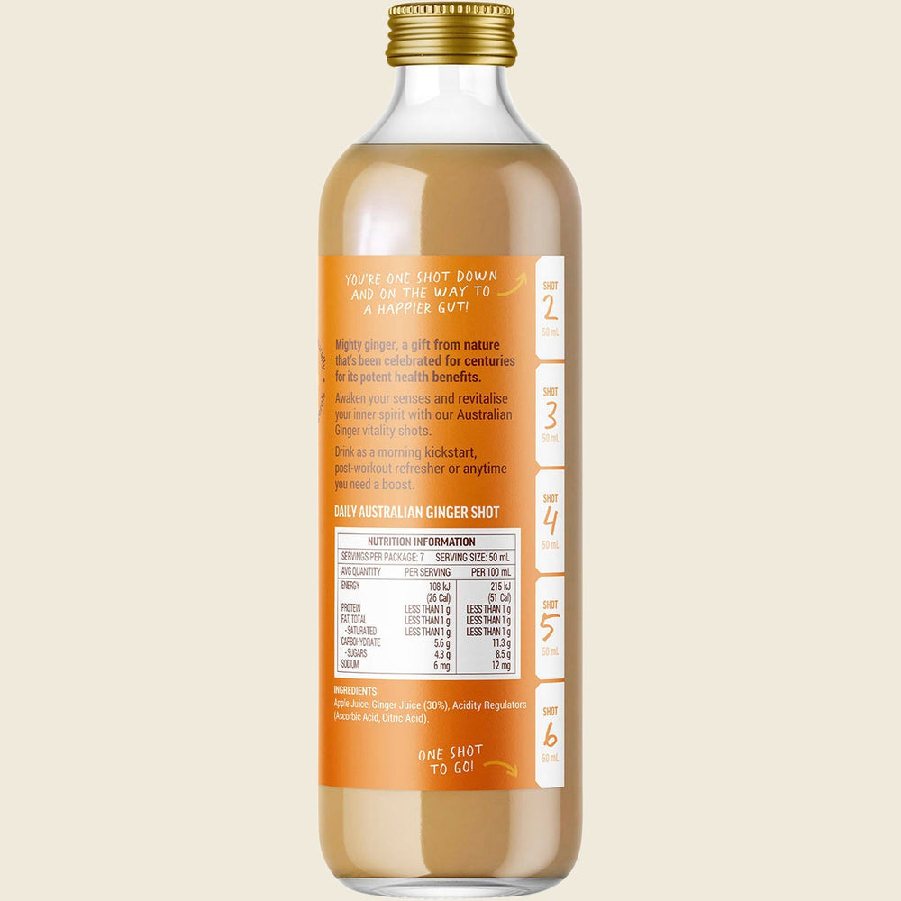 Apple Juice, Australian Ginger Juice (30%), Acidity Regulators (Ascorbic Acid, Citric Acid).