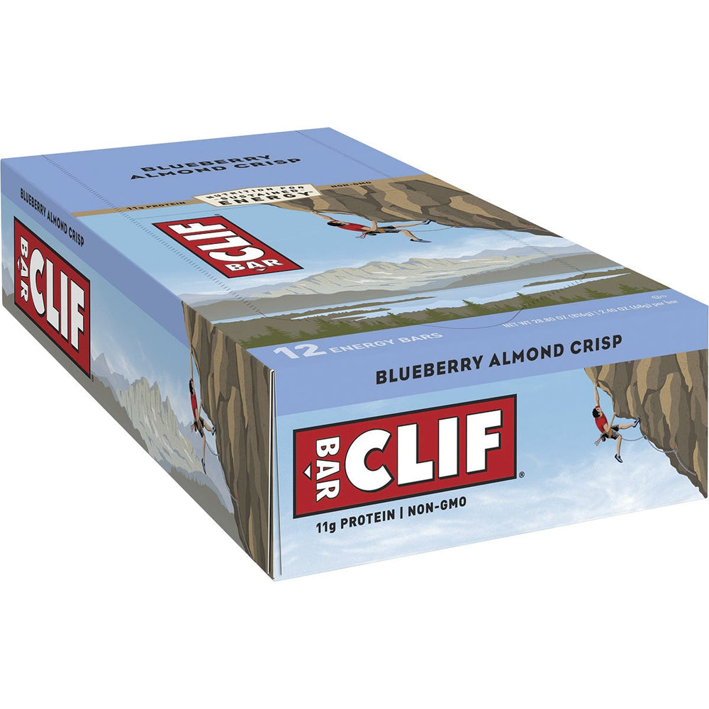 CLIF Energy Bar Blueberry Almond Crisp 12x68g Ingredients: Ingredients: Organic Rolled Oats (20.5%),Organic Brown Rice Syrup, Soy Rice Crisps (Soy Protein Isolate, Rice Flour, Barley Malt Extract),Organic Roasted Soybeans, Organic Tapioca Syrup, Organic Cane Syrup, Chicory Fibre, Organic Soy Flour, Organic Almonds (4.2%), Dried Blueberries (3.0%), Apple Juice Concentrate ,Organic High Oleic Sunflower Oil, Natural Flavours, Sea Salt, Citric Acid (Acidity Regulator),Mixed Tocopherols (Antioxidant) This product is usually dispatched or made available for collection in 2-3 business days