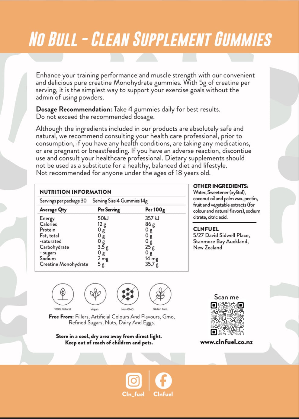 Simple yet effective! Our creatine gummies will give you 5g of pure Creatine Monohydrate per serving. A versatile nutrient that can benefit your performance but also your recovery process. Providing energy to your muscle cells, supporting muscle recovery, and muscle growth and maintenance to help prevent injury, you can say creatine is an essential nutrient for any who chooses to exercise on a regular basis.