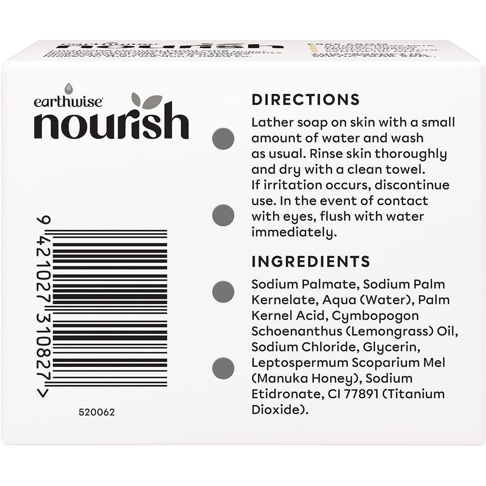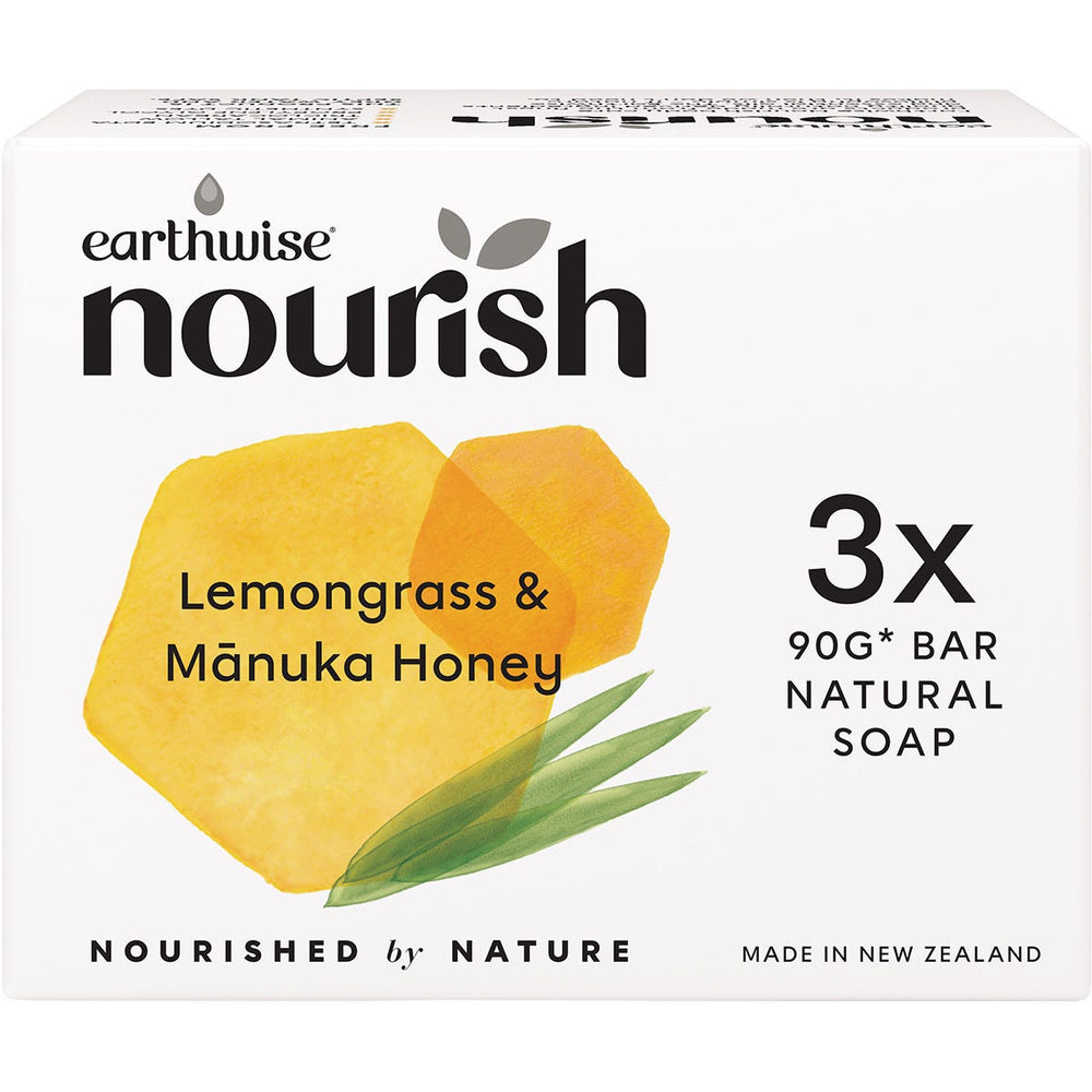 Earthwise Nourish Natural Soap Bar Lemongrass & Manuka Honey 3pk Ingredients: Sodium Palmate, Sodium Palm Kernelate, Aqua (Water), Palm Kernel Acid, Cymbopogon Schoenanthus (Lemongrass) Oil, Sodium Chloride, Glycerin, Leptospermum Scoparium Mel (Manuka Honey), Sodium Etidronate, CI 77891 (Titanium Dioxide). This product is usually dispatched or made available for collection in 2-3 business days