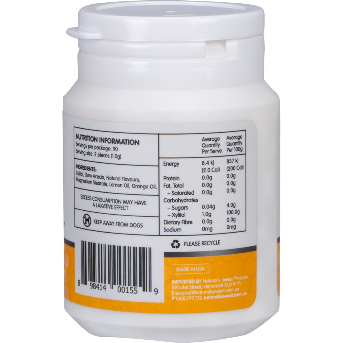 Xylitol, Magnesium Stearate, Natural Flavours.
