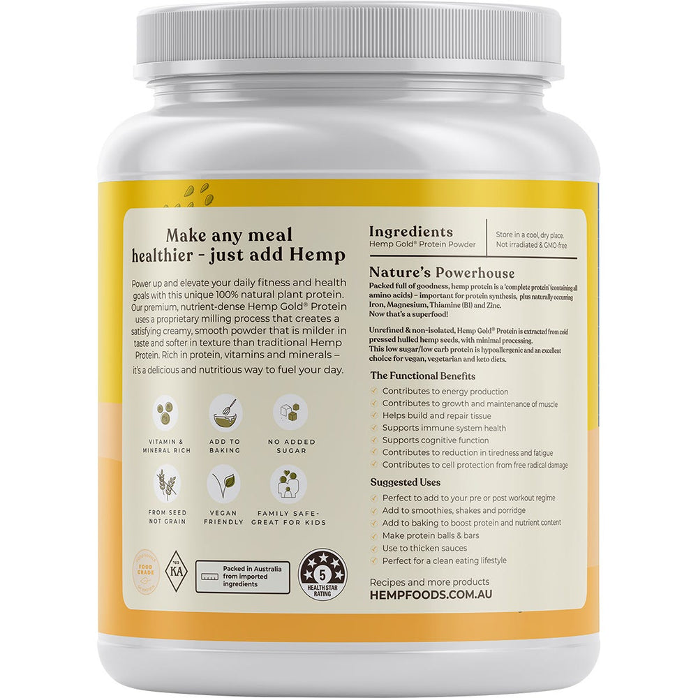 Hemp Foods Australia Organic Hemp Gold Protein 1.5kg Ingredients: 100% Certified Organic Hemp Gold Protein Powder. This product is usually dispatched or made available for collection in 2-3 business days