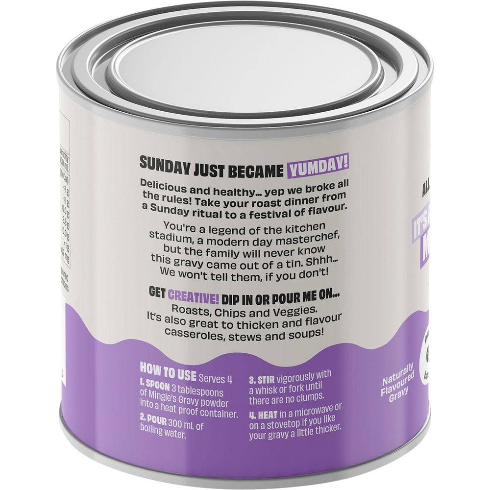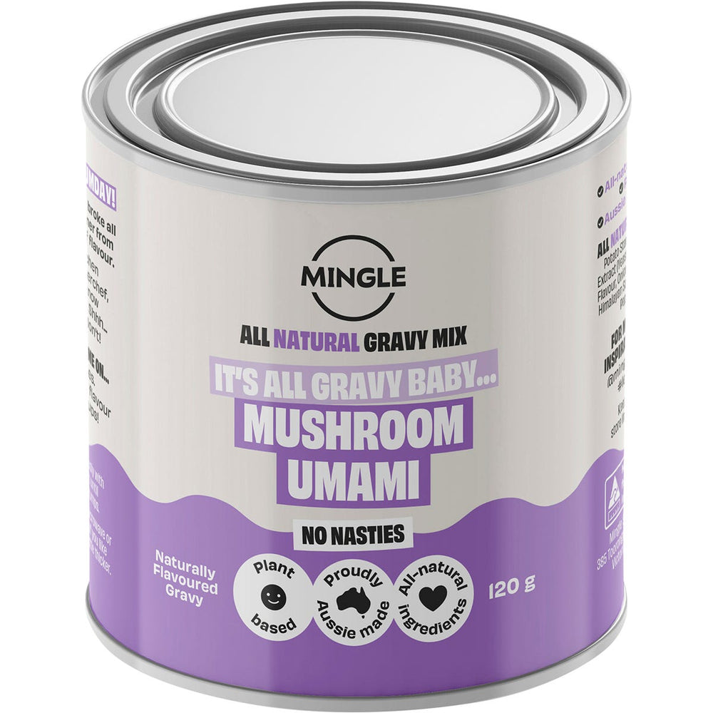 Mingle Gravy Mushroom Umami 6x120g Ingredients: Potato Starch, Rice Flour, Yeast Extract (Yeast Extract, Salt), Natural Flavour, Onion, Mushroom (6%), Pink Himalayan Salt, Garlic, Cocoa, Black Pepper, Olive Oil. This product is usually dispatched or made available for collection in 2-3 business days