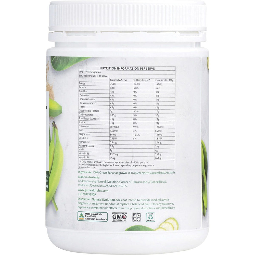 Natural Evolution GH+ Green Banana Resistant Starch 3-in-1 Multifibre 400g Ingredients: 100% Green Bananas grown in Tropical North Queensland, Australia This product is usually dispatched or made available for collection in 2-3 business days