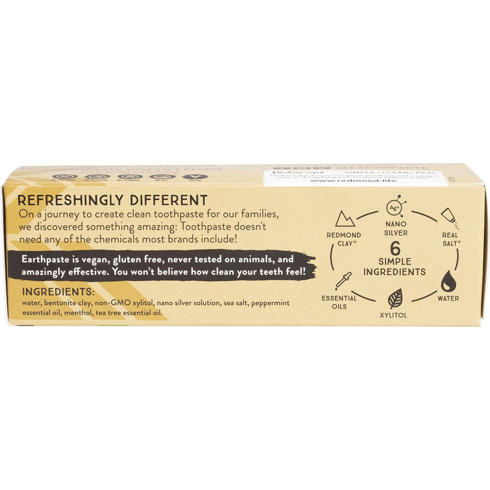 Redmond Earthpaste Toothpaste with Silver Peppermint 113g Ingredients: Water, Bentonite Clay, Non-GMO Xylitol, Nano Silver Solution, Sea Salt, Peppermint Essential Oil, Menthol, Tea Tree Essential Oil. This product is usually dispatched or made available for collection in 2-3 business days