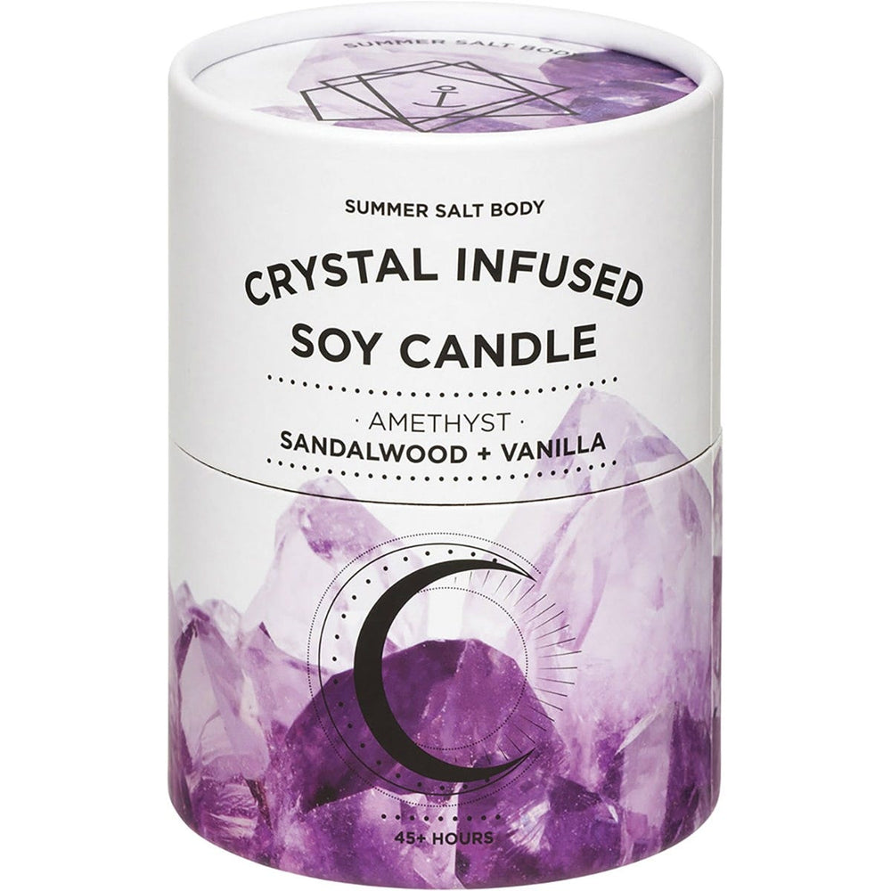 Summer Salt Body Crystal Infused Soy Candle Amethyst Sandalwood Vanilla Ingredients: Biodegradable & Eco-Friendly Soy Wax Featuring A Cotton Wick. Infused With Plant Essence & Essential Oils + Amethyst Gemstones. This product is usually dispatched or made available for collection in 2-3 business days