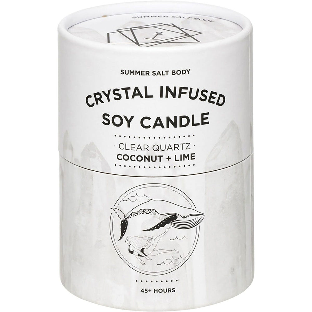 Summer Salt Body Crystal Infused Soy Candle Clear Quartz Coconut Lime Ingredients: Biodegradable & Eco-Friendly Soy Wax Featuring A Cotton Wick. Infused With Plant Essence & Essential Oils + Clear Quartz Gemstones. This product is usually dispatched or made available for collection in 2-3 business days