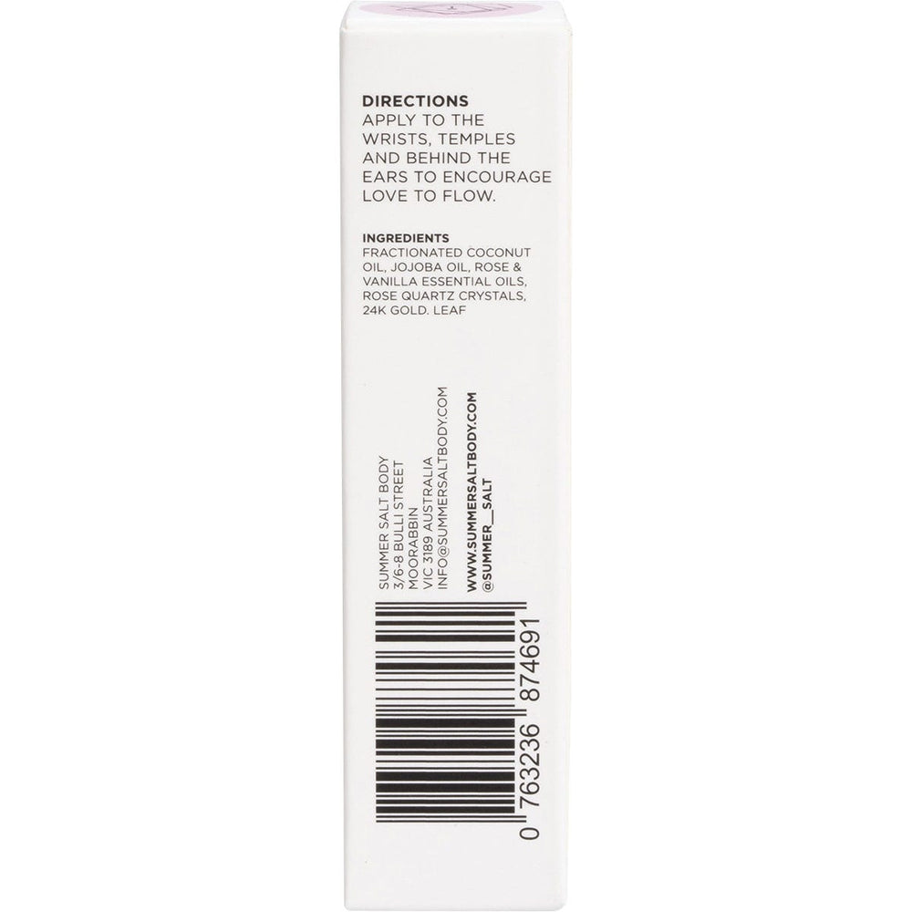 Summer Salt Body Essential Oil Roller 24K Gold Love Rose Quartz 10ml Ingredients: Fractionated Coconut Oil, Jojoba Oil, Rose & Vanilla Essential Oils, Rose Quartz Crystals, 24k Gold Leaf. This product is usually dispatched or made available for collection in 2-3 business days