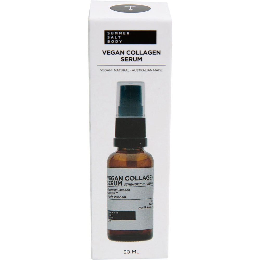 Summer Salt Body Vegan Collagen Serum 30ml Ingredients: Purified Water, Hyaluronic Acid, Vegetable Collagen (Seaweed), L-Ascorbic Acid (Vitamin C), Leuconostoc (Radish Root) Ferment Filtrate. This product is usually dispatched or made available for collection in 2-3 business days