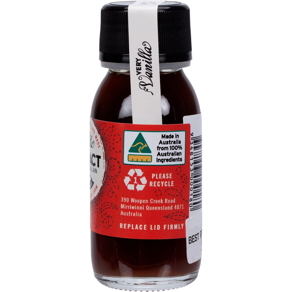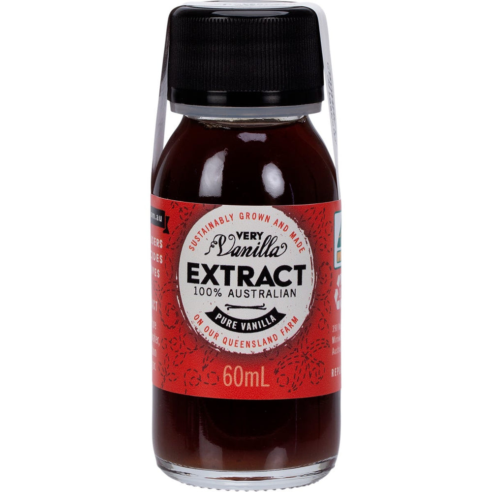 Very Vanilla Pure Vanilla Extract 100% Australian 60ml Ingredients: Pure Bean Extractives (Water, Alcohol 35%, Bourbon Vanilla Beans), Sugar. This product is usually dispatched or made available for collection in 2-3 business days