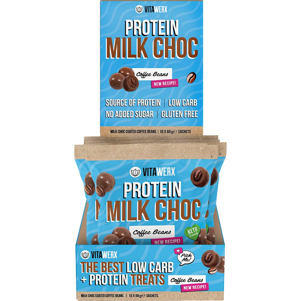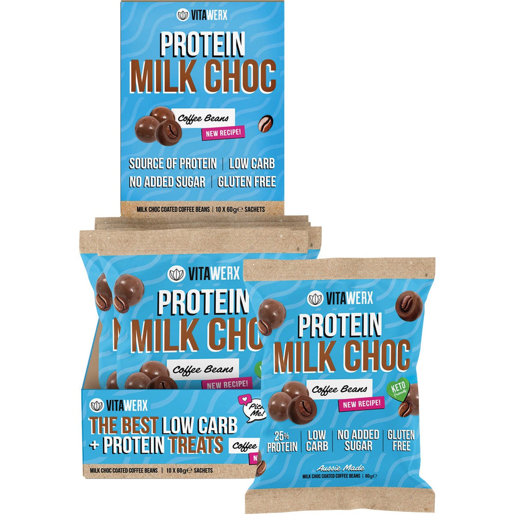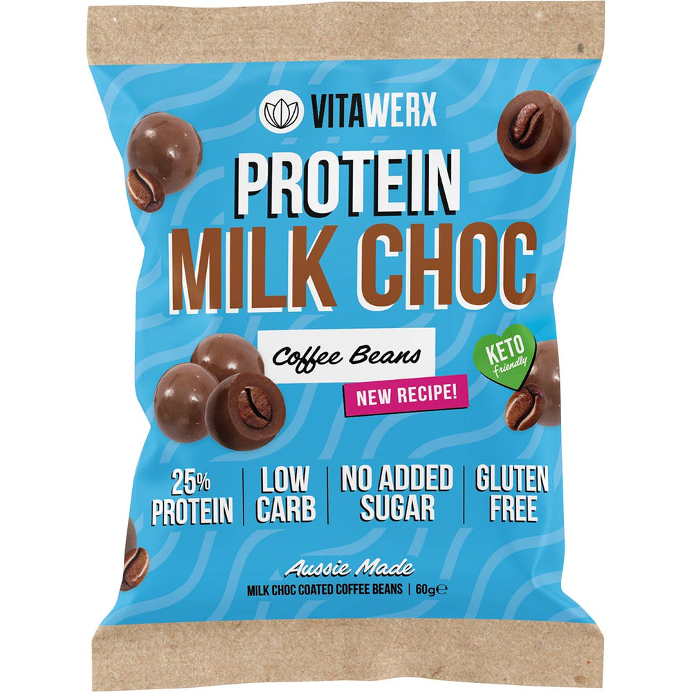 Choc [Vegetable Fat, Protein Powders 26% (Whey Protein Isolate (Milk), Milk Protein Isolate), Natural Sweetener (Erythritol),Milk Solids, Cocoa Solids, Inulin, Emulsifier (Sunflower Lecithin), Natural Flavour, Natural Sweetener (Thaumatin), Salt], Coffee Beans 10%, Glazing Agent (Gum Arabic).