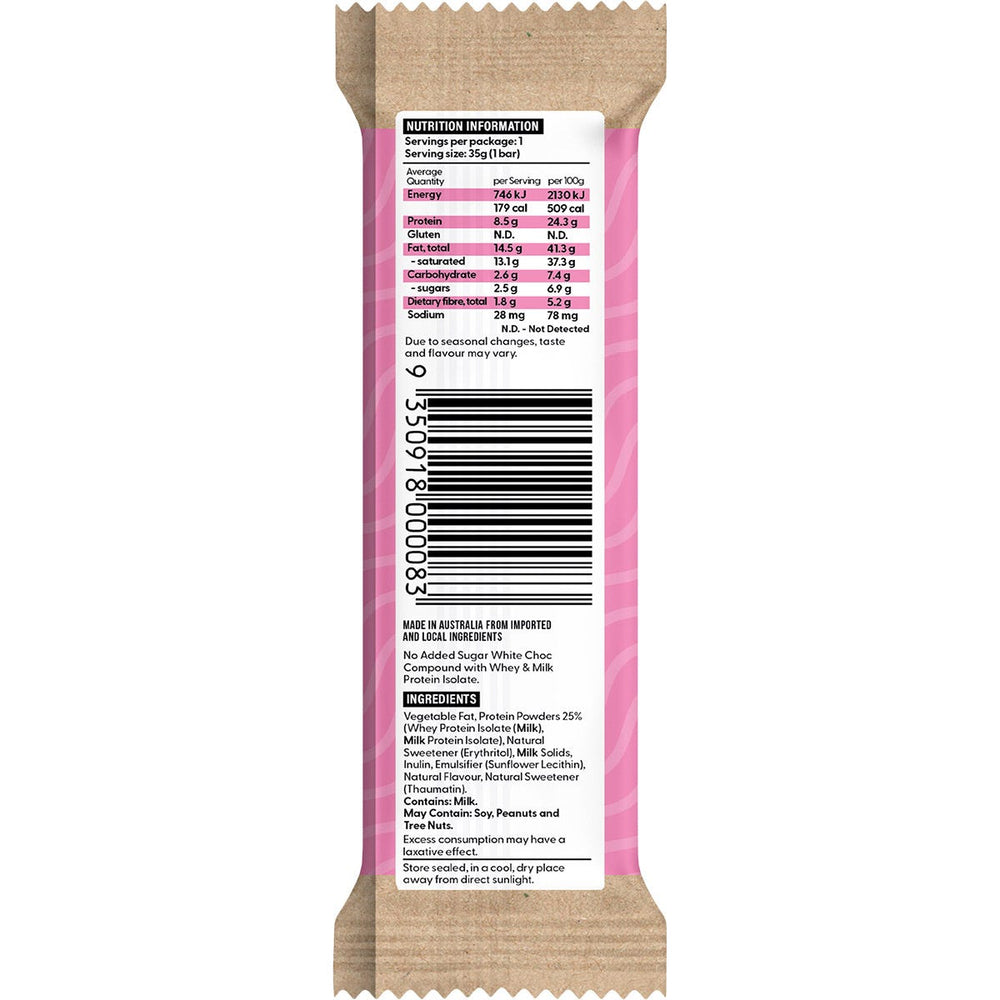 Vegetable Fat, Protein Powders 25% (Whey Protein Isolate (Milk), Milk Protein Isolate), Natural Sweetener (Erythritol),Milk Solids, Inulin, Emulsifier (Sunflower Lecithin), Natural Flavour, Natural Sweetener (Thaumatin).