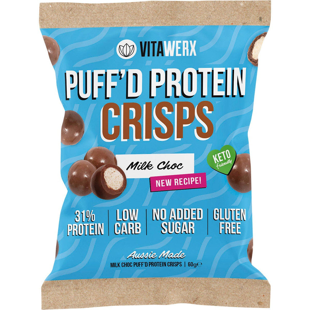Choc [Vegetable Fat, Protein Powders 26% (Whey Protein Isolate (Milk), Milk Protein Isolate), Natural Sweetener (Erythritol),Milk Solids, Cocoa Solids, Inulin, Emulsifier (Sunflower Lecithin), Natural Flavour, Natural Sweetener (Thaumatin), Salt], Milk Protein Crisps 8%, Glazing Agent (Gum Arabic).