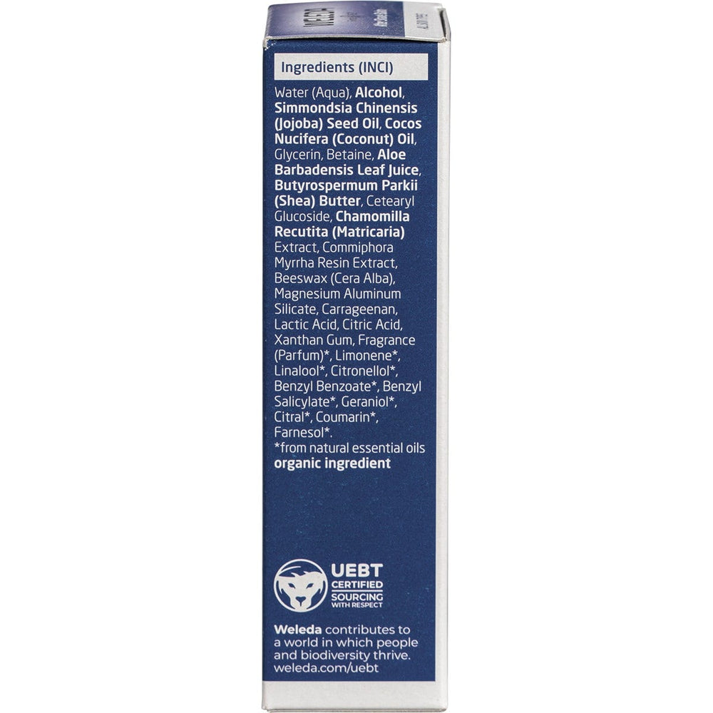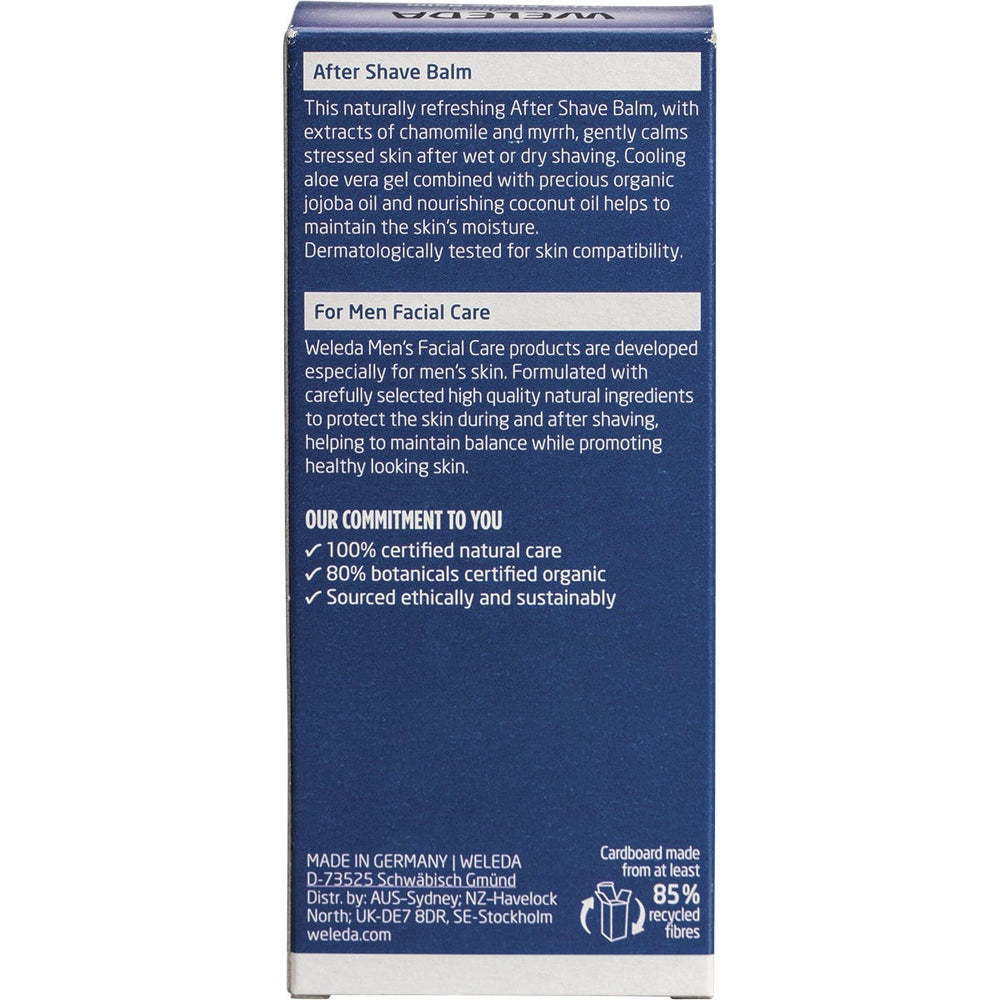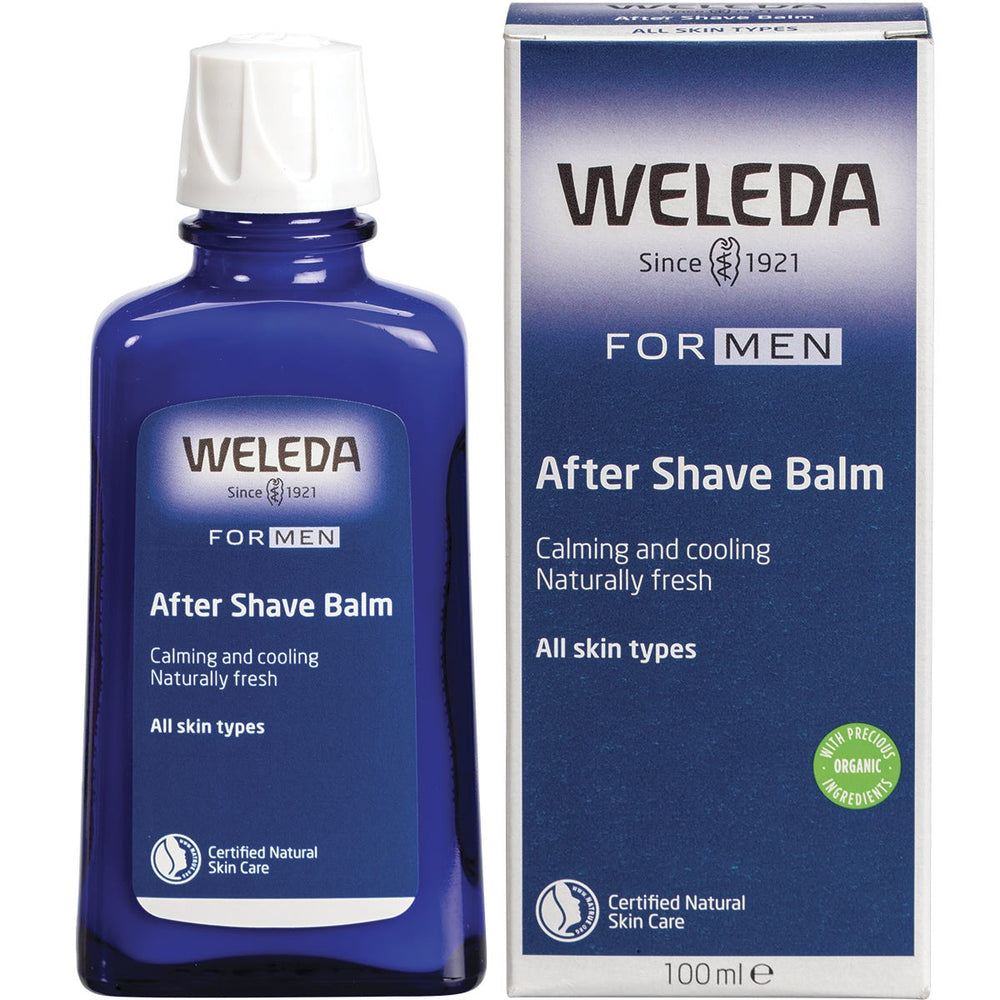 Weleda After Shave Balm Men 100ml Ingredients: Water (Aqua), Alcohol, Simmondsia Chinensis (Jojoba) Seed Oil, Cocos Nucifera (Coconut) Oil, Glycerin, Betaine, Aloe Barbadensis Leaf Juice, Butyrospermum Parkii (Shea) Butter, Cetearyl Glucoside, Chamomilla Recutita (matricaria) Extract, Commiphora Myrrah Extract, Beeswax (Cera Alba), Carrageenan, Magnesium aluminium Silicate, Xanthan Gum, Lactic Acid, Fragrance (Parfum)*, Limonene*, Linalool*, Citronellol1, Benzyl Benzoate*, Benzyl Salicylate*, Geraniol*, Citral*, Coumarin*, Farnesol*. *From Natural Essential Oils This product is usually dispatched or made available for collection in 2-3 business days