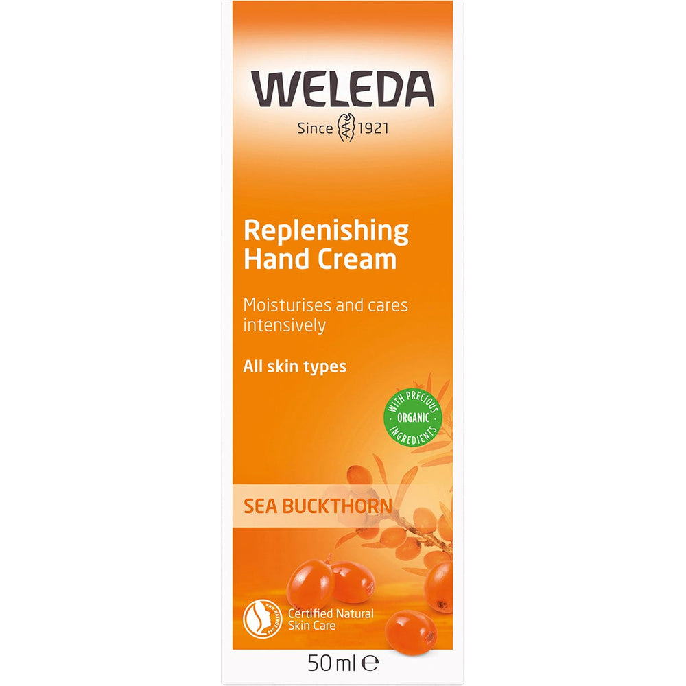 Weleda Replenishing Hand Cream - Sea Buckthorn 50ml Ingredients: Water (Aqua), Sesamum Indicum (Sesame) Seed Oil, Alcohol, Hydrolyzed Beeswax, Tapioca Starch, Lysolecithin, Beeswax (Cera Alba), Glyceryl Stearate SE, Hippophae Rhamnoides Oil, Xanthan Gum, Fragrance (Parfum)*, Limonene*, Linalool*, Citronellol*, Benzyl Benzoate*, Benzyl Salicylate*, Geraniol*, Citral*, Farnesol*. *From Natural Essential Oils This product is usually dispatched or made available for collection in 2-3 business days