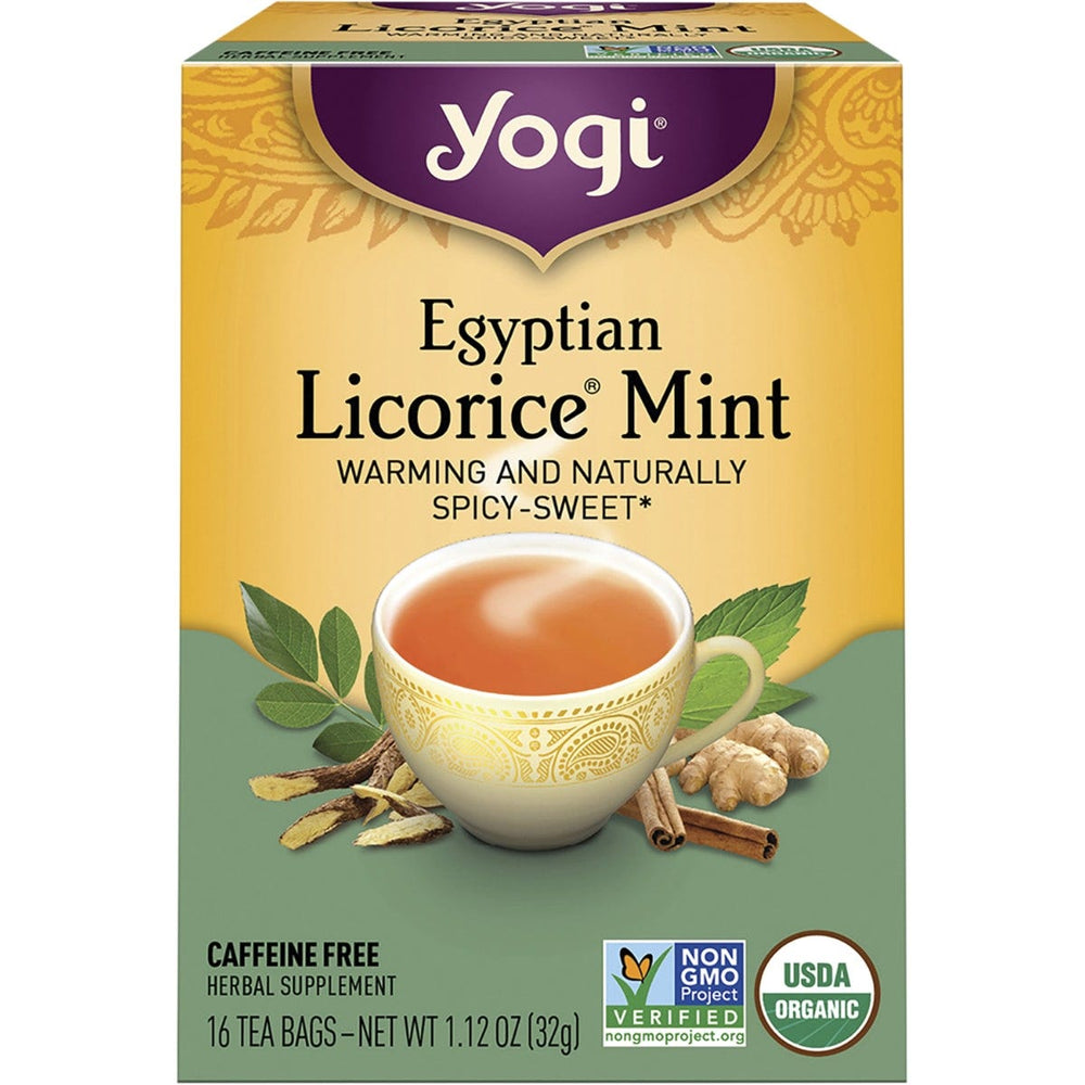 Yogi Tea Herbal Tea Bags Egyptian Licorice Mint 16pk Ingredients: Organic Peppermint Leaf, Organic Liquorice Root, Organic Cinnamon Bark, Organic Cardamom Pod, Organic Ginger Root, Organic Stevia Leaf, Organic Clove Bud, Organic Black Pepper, Organic Cinnamon Bark Oil, Organic Cardamom Seed Oil, Organic Ginger Root Oil. This product is usually dispatched or made available for collection in 2-3 business days
